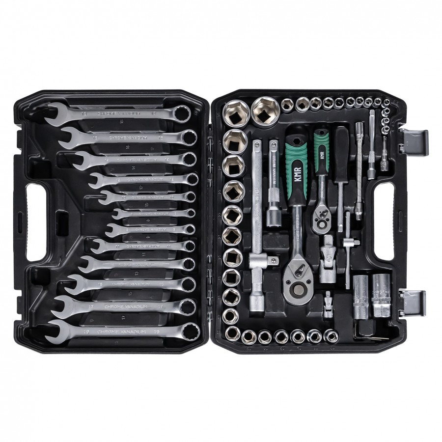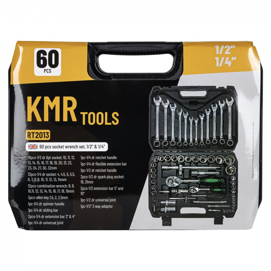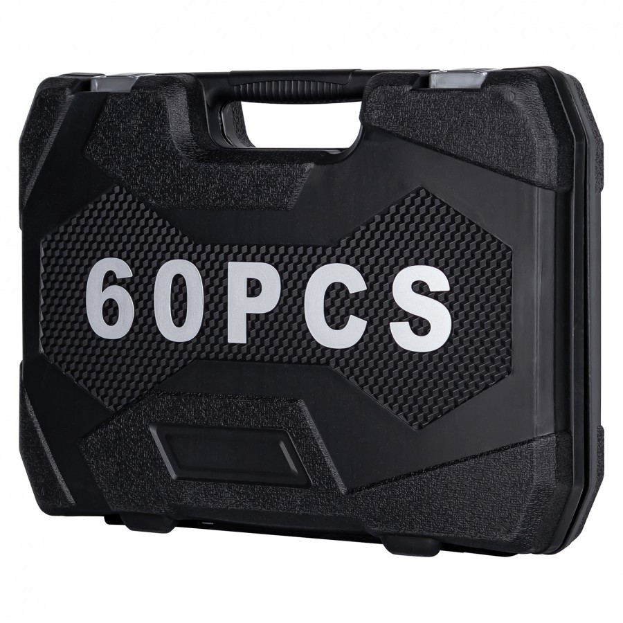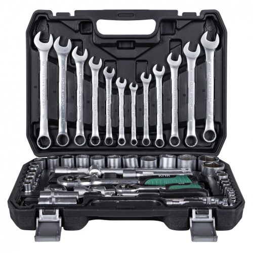 • A készlet elemeinek száma: 60 darab• A készlet súlya: 5,60 kg• Kivitel anyaga: CrV acél• A készlet tartalma:» 18 db-os 1/2"-os dugókulcsfejű, 6 pontos dugókulcs: 10, 11, 12, 13, 14, 15, 16, 17, 18, 19,20, 21, 22, 23, 24, 27, 30, 32 mm» 13 db-os 1/4"-os dugókulcsfejű dugókulcs: 4, 4,5, 5, 5,5, 6, 7, 8, 9, 10, 11, 12, 13, 14 mm» 12 db-os villáskulcs: 8, 9, 10, 11, 12, 13, 14, 15, 16, 17, 18, 19 mm» 3 db-os imbuszkulcs 1,5, 2, 2,5 mm» 1 db-os 1/4 hüvelykes forgó fogantyú» 1 db-os 1/4 hüvelykes csúszó rúd» 2 db-os 1/4 hüvelykes hosszabbító rúd 2" és 4"» 1 db-os 1/4 hüvelykes univerzális csatl.» 1 db-os 1/4 hüvelykes reteszelő fogantyú» 1 db-os 1/4 hüvelykes rugalmas hosszabbító rúd» 1 db-os 1/2 hüvelykes reteszelő fogantyú» 2 db-os 1/2 hüvelykes gyertyafogantyú: 16, 21 mm» 2 db-os 1/2 hüvelykes hosszabbító rúd 5" és 10"» 1 db-os 1/2 hüvelykes univerzális csatl.» 1 db-os 1/2 hüvelykes 3 utas adapter