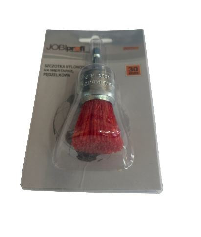 A JOBIPROFI homlokkefe kompakt méretű,25 mm átmérőjű, nejlon sörtékkel készült kefe, HEX (hatszögű) befogással.Kiválóan alkalmas finom tisztítási, polírozási és felület-előkészítési munkákhoz, különösen nehezen hozzáférhető helyeken.A HEX szár stabil csatlakozást biztosít kézi vagy elektromos fúrógépekhez.