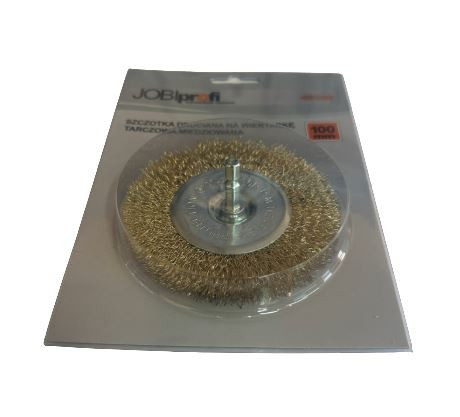 A JOBIPROFI réz sörtéjű tárcsakefe kompakt, 100 mm átmérőjű, HEX (hatszögletű) száras kialakítással.Kifejezetten fém, fa vagy műanyag felületek tisztítására és polírozására készült, ahol a kefe kíméletesebb, mint az acél sörtés változat.