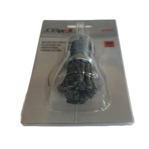 A JOBIPROFI acél sörtéjű fúrógépes kefe kompakt, 30 mm átmérőjű kialakításban, HEX (hatszögű) száras befogással.Kifejezetten fémfelületek tisztítására, rozsda és oxidréteg eltávolítására, valamint felület-előkészítésre alkalmas.