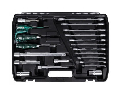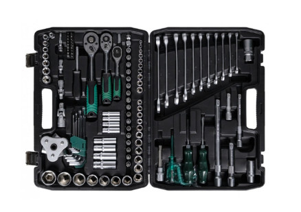 Dugókulcs klt. 122db-os 1/2" 3/8" 1/4"» 7 db 1/2"-os dugókulcs: 20, 21, 22, 24, 27, 30, 32 mm» 11 db 3/8"-os dugókulcs: 9, 10, 11, 12, 13, 14, 15, 16, 17, 18, 19 mm» 10 db 1/4"-os dugókulcs: 4, 5, 6, 7, 8, 9, 10, 11, 12, 13 mm» 4 db mély dugókulcs 3/8": 13, 14, 15, 17 mm» 8 db 3/8"-os dugókulcsok: E8, E10, E11, E12, E14, E16, E18, E20» 4 db hosszú 1/4"-os dugókulcs: 8, 9, 10, 12 mm» 3 db racsnis kulcs: 1/2", 3/8", 1/4"» 3 db univerzális csatlakozó: 1/2", 3/8", 1/4",» 1 db csavarhúzó 1/4"» 1 db 1/4"-os hosszabbító: 50 mm» 2 db 1/2"-os hosszabbító: 125 mm, 250 mm» 2 db 3/8"-os hosszabbító: 75 mm, 150 mm» 2 db 3/8"-os gyújtógyertya-dugókulcs: 16 mm, 21 mm» 17 db dugókulcs 3/8"-os bitekkel: SL 5,5, 6,5; PH 1, 2; PZ 1, 2; H 3, 4, 5, 6, 8; T 20, 30, 40, 45, 50, 55;» 2 db. adapter: 3/8"x1/4", 3/8"x1/2"» 1 db. olajszűrő kulcs» 1 db. 1/4"-os összekötő» 18 db. bit 1/4"-os dugókulcsokhoz: SL 4, 5, 6, 5; PH 1, 3; PZ 1, 3; H 3, 4, 5, 6; T 10, 15, 20, 25, 27, 30, 40;» 9 db. Méret: 1,5, 2, 2,5, 3, 4, 5, 6, 8, 10 mm» 11 db. csillagvillás kulcs: 8, 9, 10, 11, 12, 13, 14, 16, 17, 18, 19 mm» 2 db. csavarhúzó tömörítővel: lapos és keresztfejű 6*100 mm» 1 db. mérőeszköz – 6-12-24V feszültségmérő» 1 db. 1/2"-os adapter» 1 db. dugókulcs hosszú 1/2"-os bittel: T52