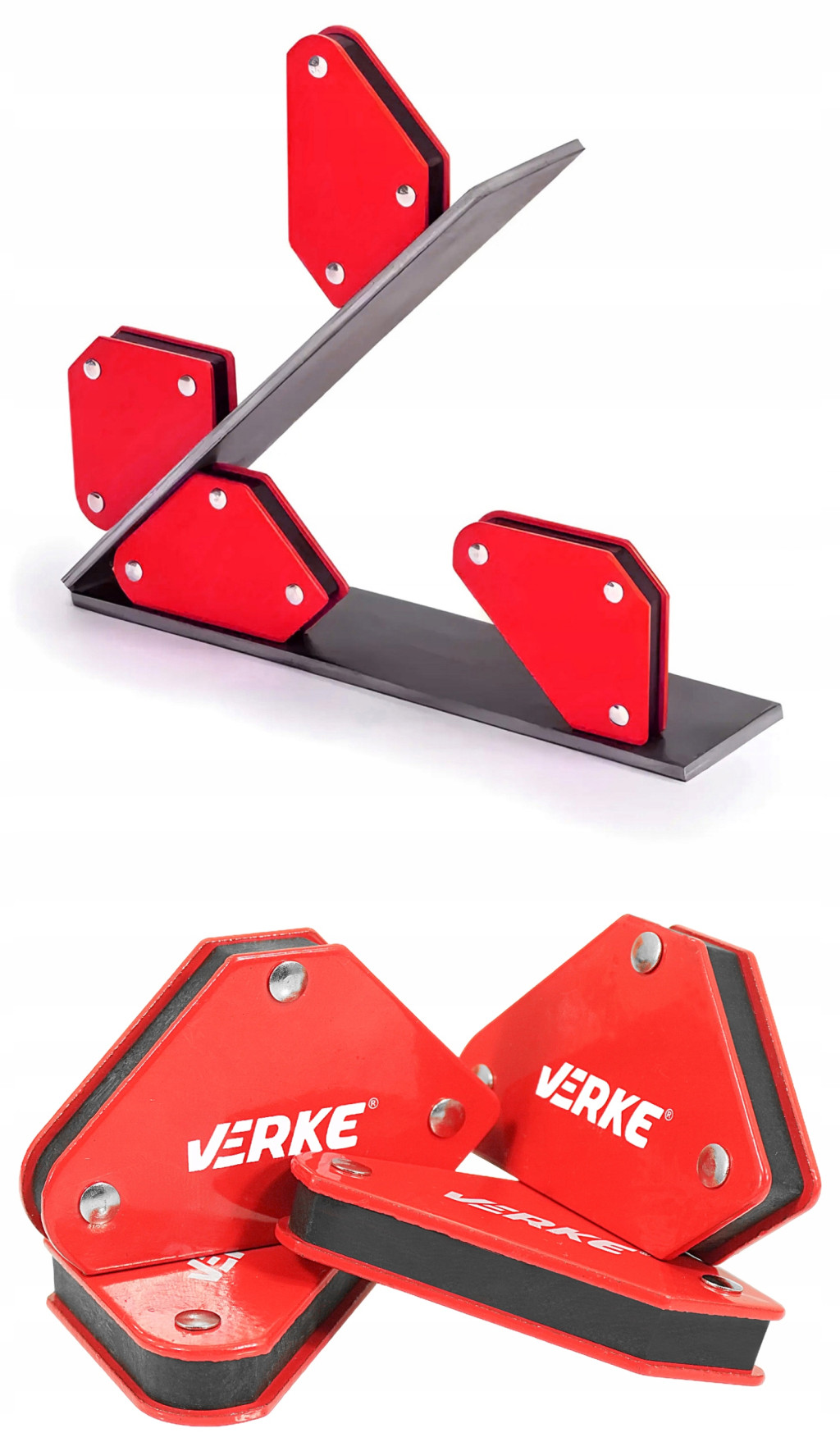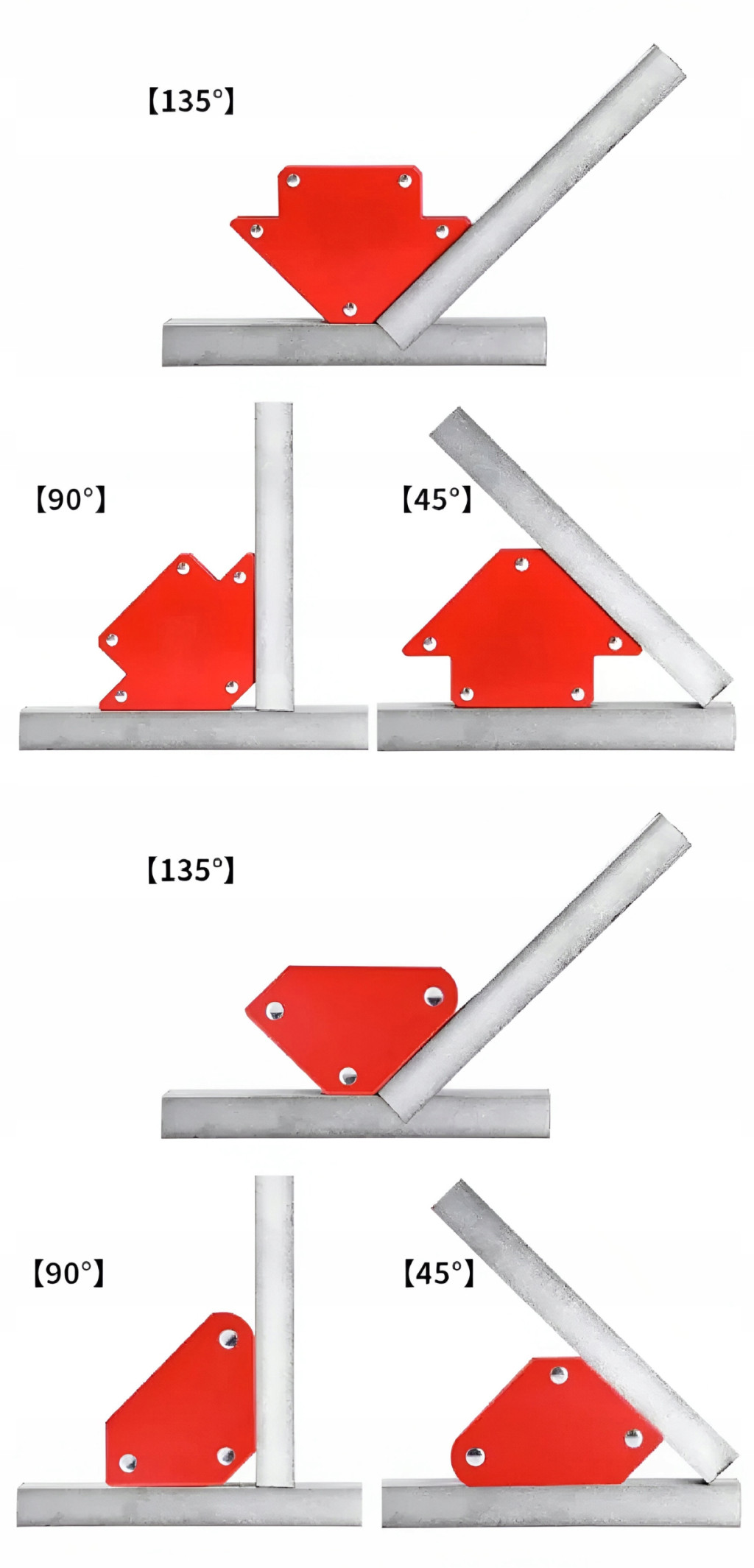 6 darabos mágneses hegesztőszög készlet acéllemezből és erős ferritmágnesekből. Fém alkatrészek ideiglenes összekapcsolására szolgál hegesztés, fúrás és festés során.