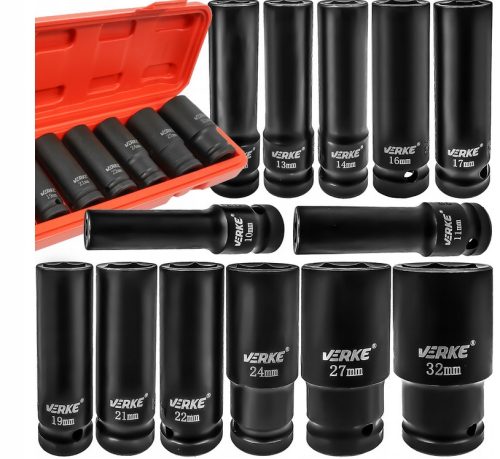 Kiváló minőségű króm-vanádium acélból készült ütvecsavarhúzó készlet. 13 darabos.A SZETT TARTALMA:1/2" hosszú dugókulcsok: 10, 11, 12, 13, 14, 16, 17, 19, 21, 22, 24, 27, 32 mmbőröndacél: CR-MO