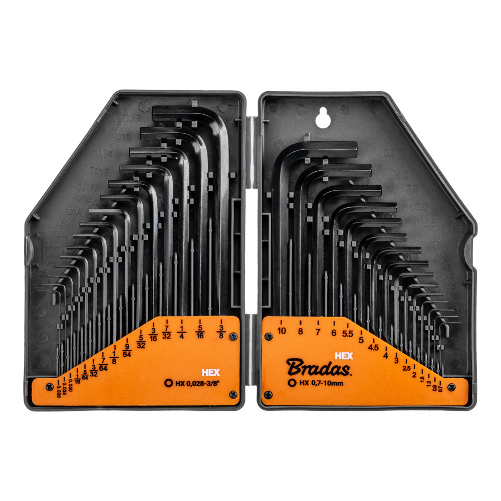 Ez az imbuszkulcskészlet a tartósságot, a kényelmet és a sokoldalúságot ötvözi. Meghosszabbított kialakításának köszönhetően könnyedén hozzáférhet még a legnehezebben elérhető helyekhez is. Megbízható eszköz minden barkácsoló és profi számára.Műszaki adatokKészlet típusa: HEX imbuszkulcsokElemek száma: 9 darabMetrikus méretek: 0,7 / 0,9 / 1,3 / 1,5 / 2 / 2,5 / 3 / 4 / 4,5 / 5 / 5,5 / 6 / 7 / 8 / 10 mmSAE méretek: 0,028» - 0,035» - 0,050» - 1/16» - 5/64» - 3/32» - 7/64» - 1/8" - 9/64» - 5/32» - 3/16» - 7/32» - 1/4" - 5/16» - 3/8"Anyag: króm-vanádium acél (CRV)Bevonat: fekete - fokozott ellenállás a korrózióval ésa sérülésekkel szemben Kialakítás: hosszú kulcsok a kényelmesebb munkavégzéshez· Csomagolás: praktikus dobozTermékjellemzők· Masszív CRV acélszerkezet a hosszú élettartamért· Stílusos és kopásálló FEKETE kivitel· Precíz Válogatott méretek széleskörű alkalmazásokhoz· Masszív doboz a kényelmes tároláshoz és szállításhozAlkalmazások· Professzionális autó- és szervizműhelyek· Mechanikus és elektronikus alkatrészek összeszerelése és szétszerelése· Kerékpár-, motorkerékpár- és sporteszköz-szerviz· Karbantartási és javítási munkák otthon és a garázsban· Ideális barkácsolóknak és szakembereknek