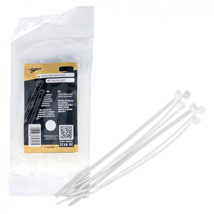 Műszaki adatok:• Szélesség: 7,6 mm• Hosszúság: 200 mm• 100 darab/csomagFunkciók:• A sima, lekerekített élek biztosítják, hogy a kábelek és vezetékek ne vágódjanak elvagy sérüljenek meg használat közben.• Alacsony profilú fej, amely helyet takarít meg• Az anyagnak ellenálló anyag biztosítja a szalagok hosszú élettartamát.• Univerzális használat otthon, műhelyben és irodában.