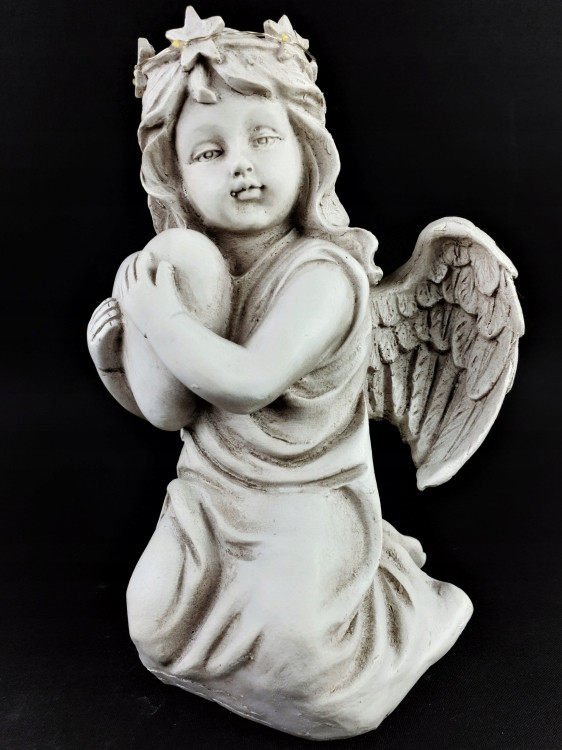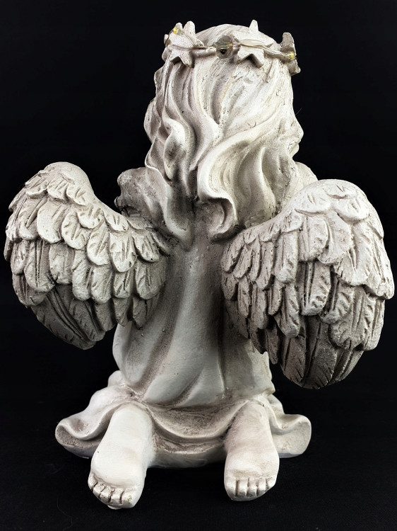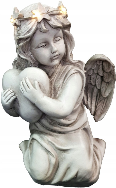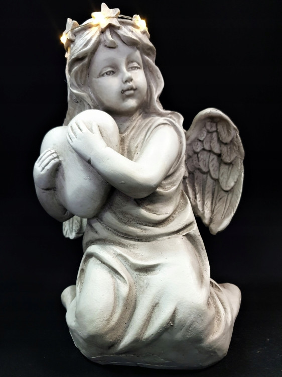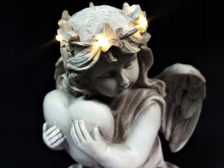 Az energiatakarékos LED dióda fényforrásnak köszönhetően lenyűgöző hatást kelt , meleg fehér fénnyel világítva meg az angyal alakját.