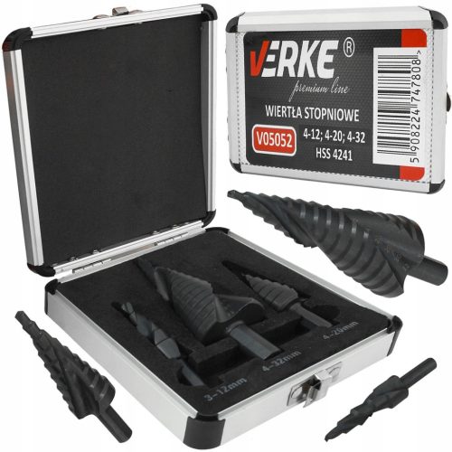 Kúpos lemezfúró készlet 3 db-os HSS, 4-12, 4-20, 4-32 mm VERKE PREMIUM LINE